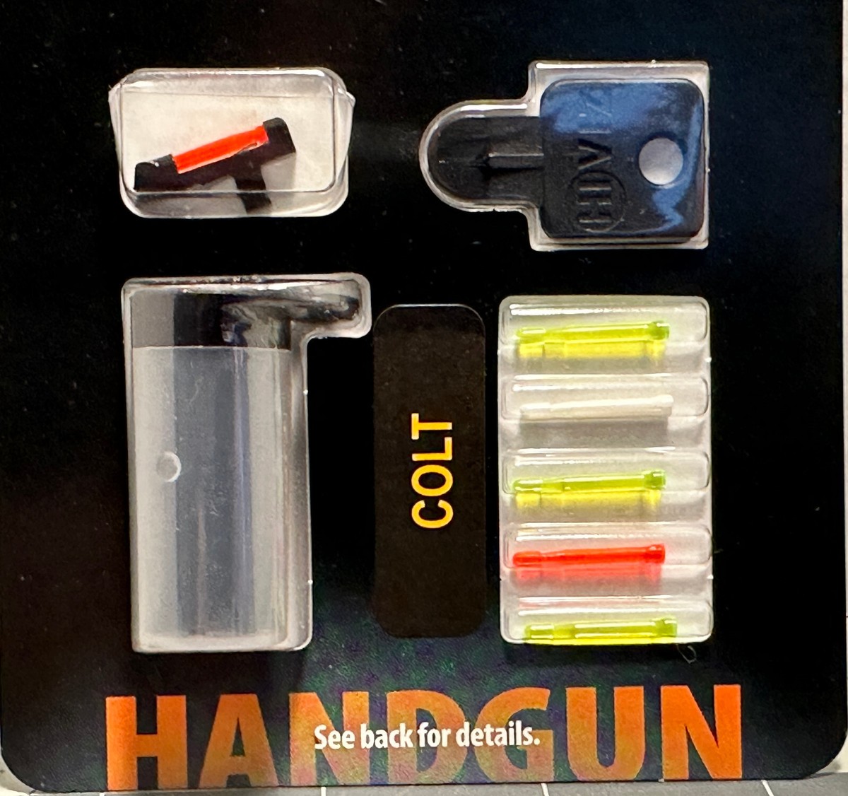 This interchangeable style, front pistol sight for Tenon style 1911 includes six fiber optic LitePipes in red, green and white a carrying case, and a key to interchange LitePipes. It fits most wide Tenon 1911’s and can be narrowed to fit early narrow Tenon 1911’s. Improve the performance of your Colt 1911 with the HIVIZ interchangeable sight. Our bright and ultra-durable sights will enhance your confidence and shooting experience.