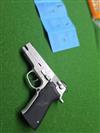 Our grips are a two piece that replaces the one piece stock grip. These grips are a straight backstrap design that installs using a mainspring retainer and screws which come with the grip. The mainspring retainer is pinned into position with the pin that holds the stock grip on. The mainspring retainer provides the threaded bosses that the grip panels screw into.