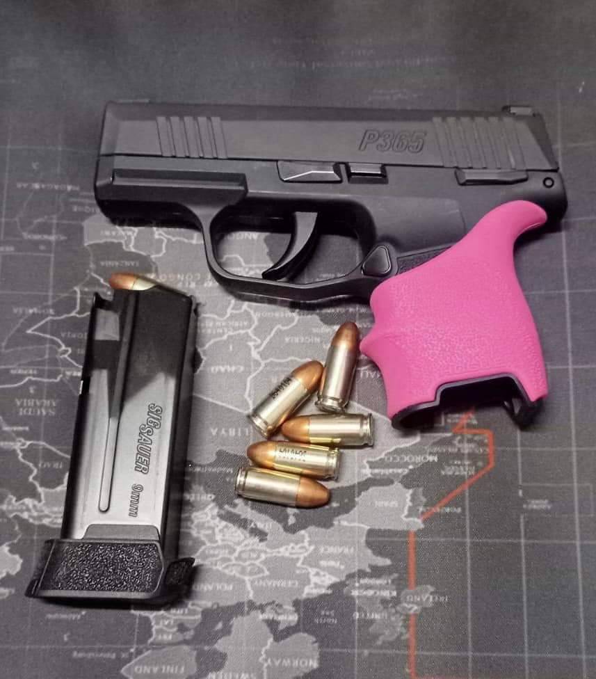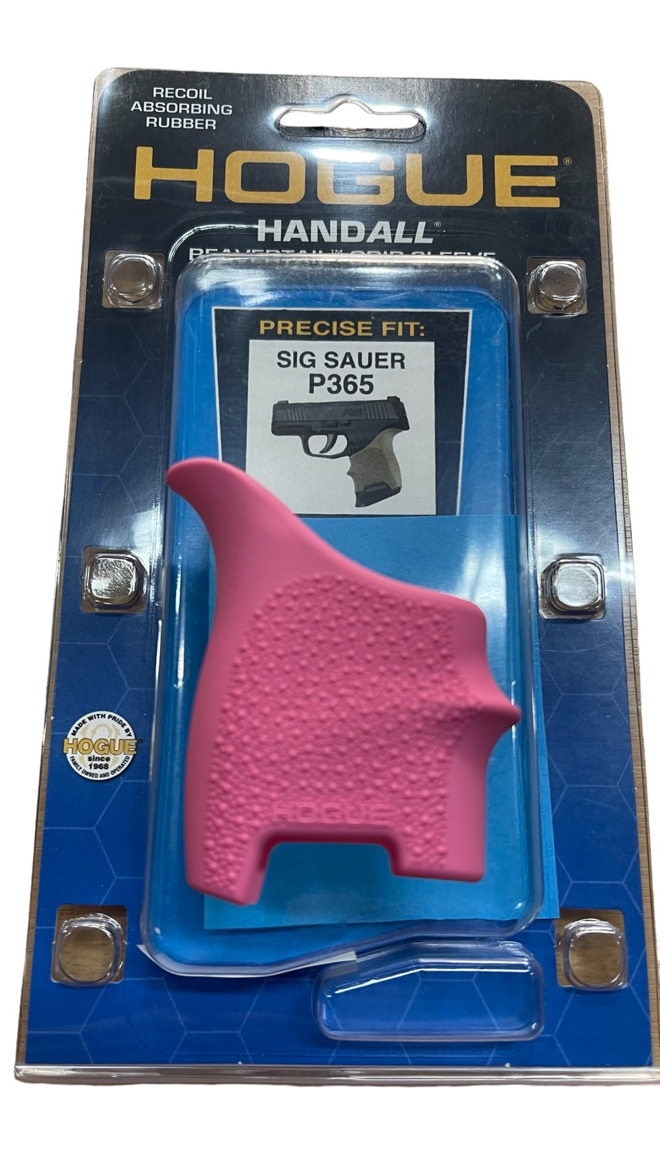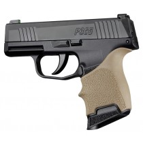Precision fit for SIG SAUER P365 models FEATURES: • Gentle palm swells fit comfortably in hand • Finger grooves naturally position fingers for optimal grip • Textured with Hogue's famous Cobblestone™ pattern for increased comfort and grip • Beavertail™ cushions the hand on recoil and offers increased hand comfort higher on the grip • Made from long lasting durable thermoplastic elastomer that ages gracefully for years of service • Designed for a tight and secure fit engaging with the texture and contours of the firearm's frame