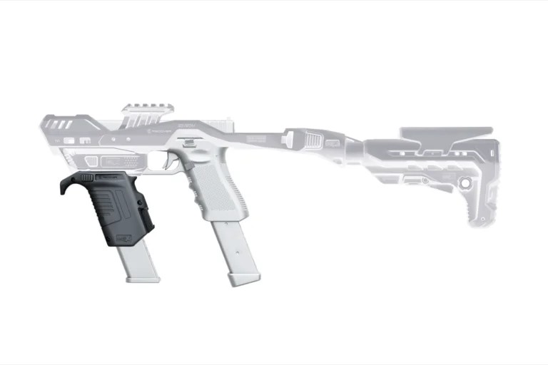 ด้ามหน้า+บ่อแม็กจับรางพิคาทินี่ พร้อมปุ่มปลดแม็กได้อย่างรวดเร็ว สำหรับ G17, G19, G19X, G24, G25, G26, G31, G32, G34, G45, G47, G49.ใช้ร่วมกับชุดแปลงปืนสั้นเป็นปืนยาวได้ทุกยี่ห้อ ที่มีรางพิคาทินี่ มาตรฐาน
