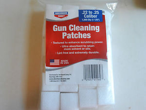FITS: .22 TO .25 CALIBER FIREARMS DURABLE CROSS WEAVE PATTERN LINT-FREE HIGHLY ABSORBENT MATERIAL DETAILS BIRCHWOOD CASEY'S GUN CLEANING PATCHES OFFER BETTER FEATURES, AND A BETTER VALUE, ALL IN AN AMERICAN MADE PRODUCT. OUR PATCHES FEATURE A DURABLE CROSS WEAVE PATTERN THAT ENHANCES THE PATCHES SCRUBBING POWER AND IS ENTIRELY LINT FREE. THE HIGHLY ABSORBENT MATERIAL HOLDS MORE OIL FOR BETTER COVERAGE AND MORE SOLVENT FOR THOSE EXTRA DIRTY CLEAN UP JOBS.
