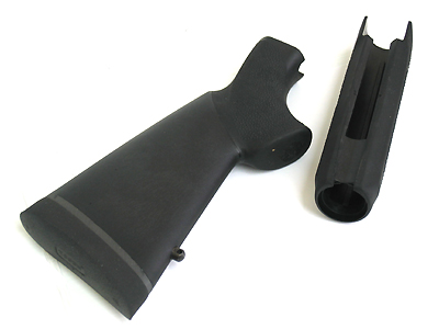 - A flat washer MUST be used with the factory stock bolt. A washer is included with the stock. The Hogue stock is designed to reuse the factory stock bolt with the addition of the flat washer. - The stock bolt (not included) is a 5 ½”long 5/16” – 18 TPI with a flat washer, available at any quality hardware store, gun parts retailer, or from Mossberg directly. You must use this bolt when changing from a pistol grip or Tamer to a butt stock. Tamers/Pistol grips use a short bolt that is included with the Tamer (no washer needed). - Forend adapter nut may be required for some models. #05020