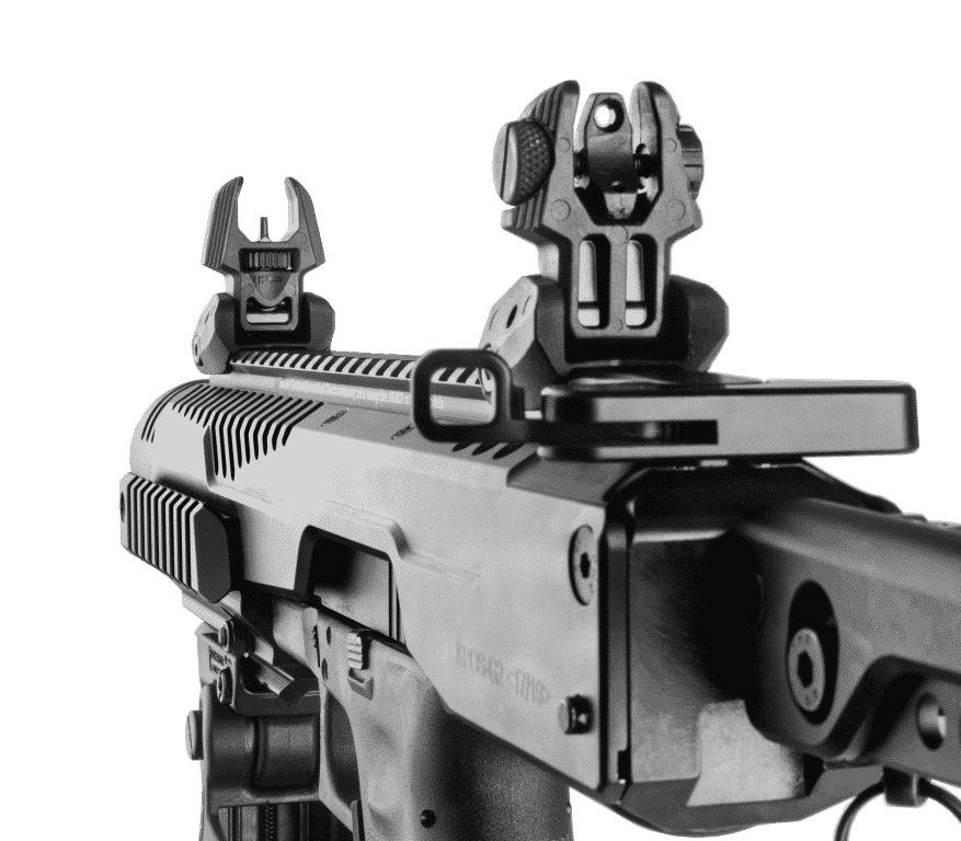 Can be used as a primary or back-up sighting solution Sleek design with minimal protruding parts, will not get caught on gear or webbing No tools needed for a quick and easy elevation and wind adjustment RBS – Rear Back-up sight can be manually adjusted for wind FBS – Front Back-up sight can be manually adjusted for elevation Durable fiberglass reinforced polymer and metal construction Spring based locking mechanism – will not break or deform