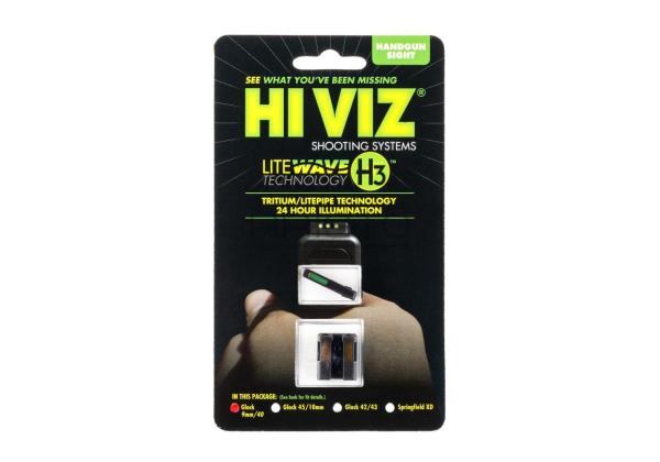 The HIVIZ® LiteWave H3® Tritium/Fiber-Optic Sight Set for Glock combines our brightest in fiber-optic capabilities with the light-emitting benefit of tritium into one sight set, bringing you 24-hour illumination. Now you can have the advantage of day and night performance all in one sight system. These sight sets are rugged and durable, designed for the roughest use, whether it is personal defense and protection, Law Enforcement, or Military. The LiteWave H3 Sight Sets offer the fastest target acquisition and greatest target visibility you’ll find.