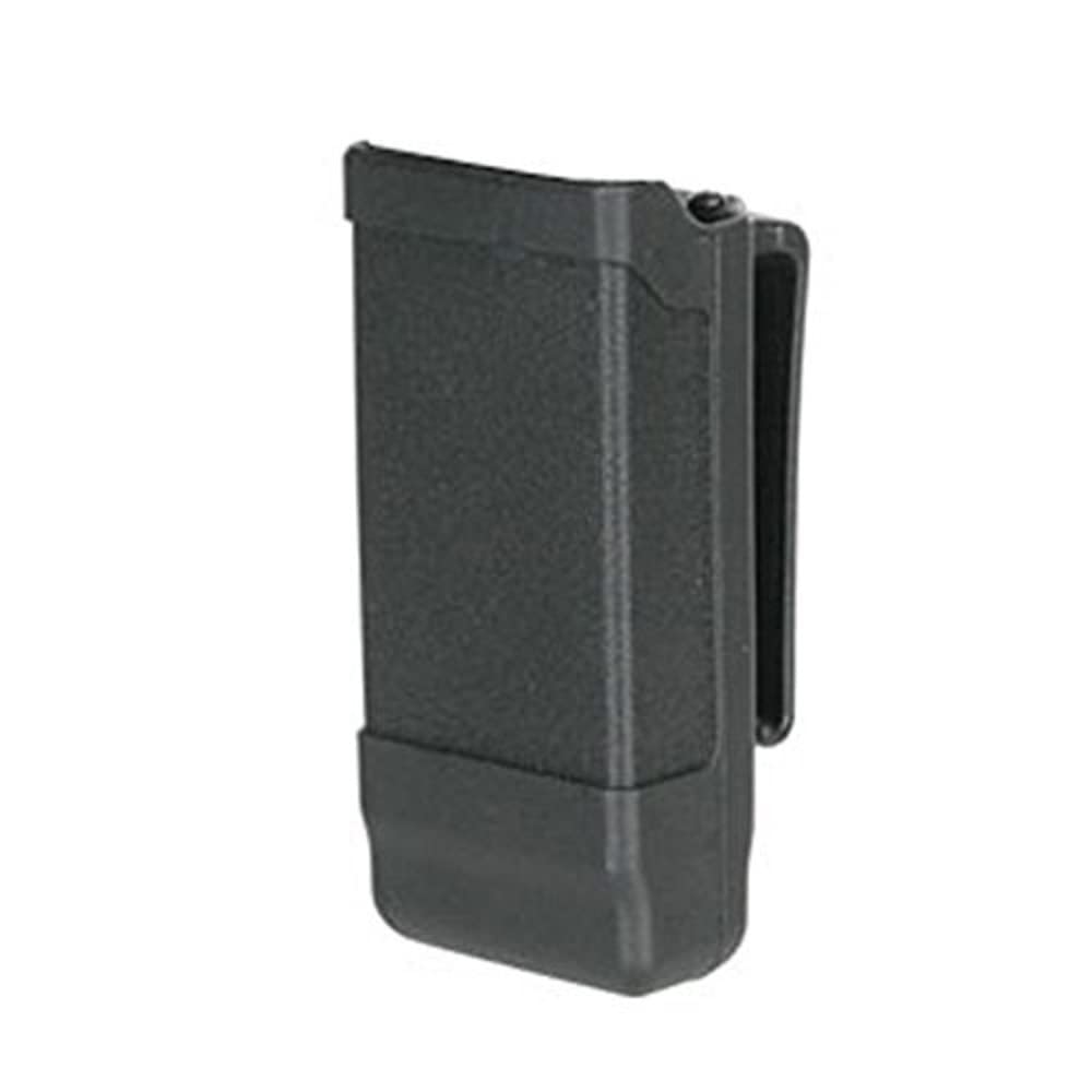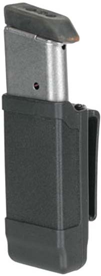 The Blackhawk Single Mag Case features a built-in tension spring that securely holds single stack magazines of various sizes. The belt clip can be removed and two Single Mag Cases can be placed side-by-side on the Dual Rail Accessory Platform (sold separately). It can also be placed next to a Blackhawk light carrier for a combo light/mag carrier.