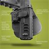 Holster Material - mold injected Nylon formula. Trigger guard locking system - active retention which holds the weapon on the trigger guard until released with the holder's forefinger.