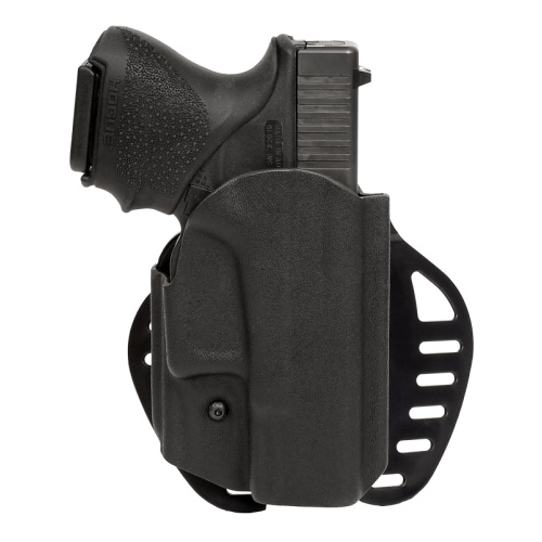 GLOCK 26 ซองพกนอกโพลิเมอร์ ปลดล็อคนิ้วโป้ง ด้านหลังติดแผ่นเสียบ / แผ่นร้อยเข็มขัด - HOGUE 52016