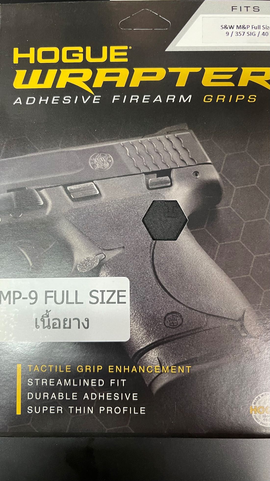 แผ่นแปะด้ามเนื้อยางแบบมีกาวในตัว ที่ออกแบบมาสำหรับปืนพก Smith & Wesson (S&W) M&P Full Size รุ่นที่มีสันด้ามขนาดกลาง (Medium Backstrap)