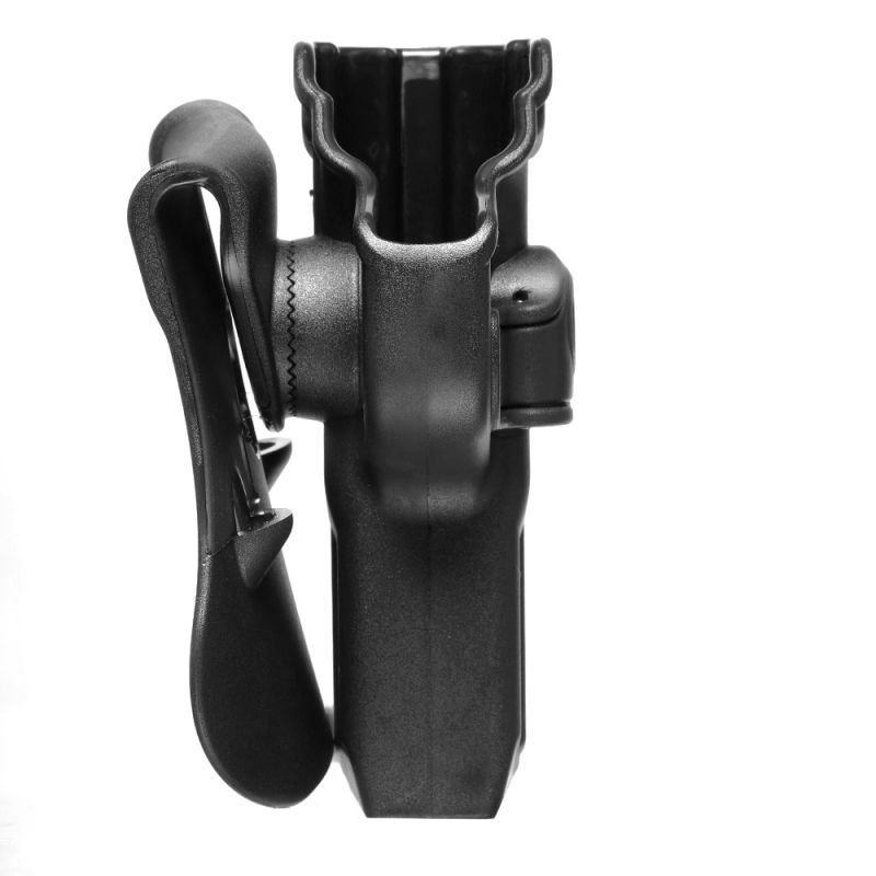 : มีระบบล็อก Level 2 (Retention) ที่ใช้ปุ่มปลดล็อคด้วยนิ้วชี้ในตำแหน่งที่พร้อมเหนี่ยวไกพอดี (The Ready) ช่วยเพิ่มความปลอดภัยจากการถูกแย่งปืน